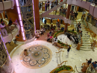 て、コーヒーコーナーのソファーで聞く。その後、ナマ演奏の聴き歩き。ホエールズルームでのキーボードと女性ボーカルの演奏、アトリウムの7階でのピアノ