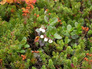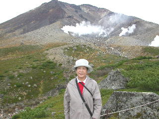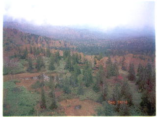 100人乗りのロープウエイで一気に昇る。途中の中腹の紅葉がとても美しかった。心配された雨も降らず、曇天はあったが、霧もかからず、とてもよ い眺望であった。上では、高山植物の紅葉が大変きれいであった。