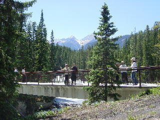 アイスフィールドパークウエイより分かれて、ヨーホー国立公園に向かう。分かれて間もなく、ヨーホー国立公園とブリティッシュ・コロンビア州の看 板がある。それを過ぎてワプタ・レイクを通過する。峠を越えて、キッキングホース川に出て、大陸横断鉄道の乗務員交替駅であるフィールド駅を通過して、脇 道に入る。
