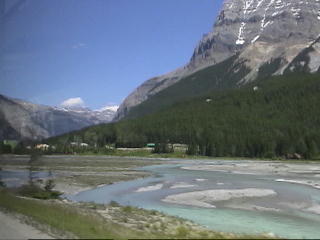 ![]() キッキングホース川向こうのフィールド駅集落 |