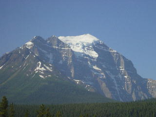 今日の行程は、バンフ国立公園で、まず、レイクルイーズとモレーンレイクを見て、コロンビア大氷原にあるアスバスカ氷河、そして引き返しながら、 ペイトレイクとボウレイクを観光するというもので、往復約400kmを走破するということで、午前7時30分のモーニングコール、8時15分にホテルを出 て、バンフの町のメリッサ・レストランで朝食。山小屋風で、ウエートレスさんの笑顔がよい。チリチリに焼いたベーコンとエッグ、オレンジ、パンにジュー ス。それから出発となり、昨日も眺めたキャッスルマウンテンを右手に見ながら同じコースを一時走り、まずはレイクルイーズに赴く。