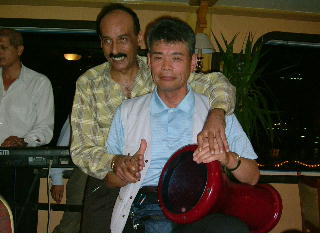午後8時に出船。ディナーも開始。バイキングである。國司さんが赤ワインをおごってくれる。いい気分で飲み、かつ食べていると生演奏だとかといっ て、演奏し始めるが、音質・音量調整がなっていない。高音を上げすぎてハウリングばかりする。注意するが一向に直らない。しかも目の前でやられるのだから たまったものではない。しばらく添乗員の仲野さんの席に移る。しかし、どうにも直りそうにないので、外に出て甲板に上がる。こちらの方が川風に吹かれ気分 がよい。そうする内に、我々の一行がたまったものではないと上がってくる。9時頃にはベリーダンスが始まるといって仲野さんが案内に来る。ちょっと様子を 見に降りたが、相変わらずの大音響。とうとうダンスも見ず。後で宇野さんから写真を見せてもらったが、国司さんが太鼓を叩いてと盛り上げていたようだ。 10時を大幅に過ぎて元に戻り、ホテルに帰ったのが11時前。