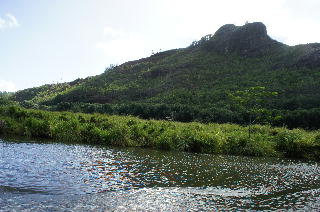 船して鬱蒼と繁る森の中を進む。ジンジャーの仲間が赤やピンクの花を付けている。モンステラやドラセナも高く伸びている。15分程歩いて、ハワイ王族の結
