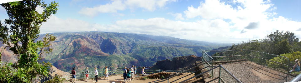 13時20分頃、ワイメア渓谷見物に行く。30分程で千数百メーターの展望台に。千メートルも切れ込んでいる雄大な景色は、 ミニグランドキャニオン。バス駐車場へ降りると鶏がいる。写真撮り。