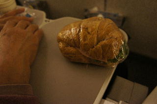 クオフ。クリスマス休暇のため、発着する便が混雑し、遅れた。羽田着が5時40分の予定。機体はB777-200で約400人搭乗定員。夜食としてサンドイッチ。飲み物は白ワインをい