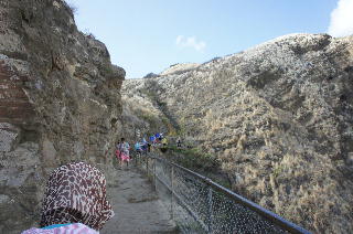 10時半から登り始めて下山が12時過ぎ。初めのうちは登る人も少ないようにみえたが、次々と登って行く。我々は足を痛めて はいけないと思い、ゆっくりと登る。子ども連れもあり、年寄りも結構多い。日本人もいる。
