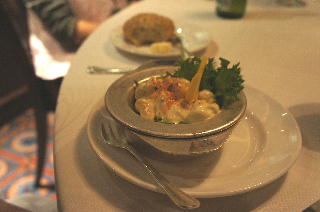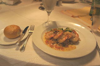 前菜は、海老のカクテル、冷製マンゴと梨のスープ、メインは