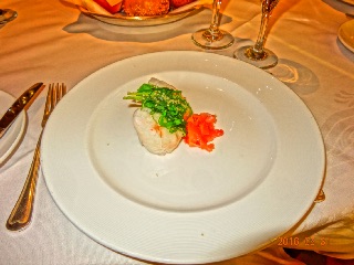 部屋に戻り、フォーマルに着替えて、午後5時15分にインターナショナルレストランに。岩崎さんご夫婦と12番テープルに。先着として京都のご夫婦がお