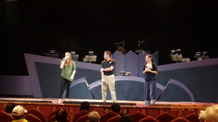 午後1時からシアターで舞台裏ツアーがある。舞台監督と演技監督がステージに立ち、英語で説明。日本人スタッフが来な