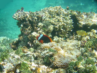 楽しんで船に上がる。しばらく休んで、すぐ近くのポイントへ移動して海に。私は船端から海に。直ぐ側の珊瑚礁でクマノミを見つけ、みんなを呼び寄せる。瑠