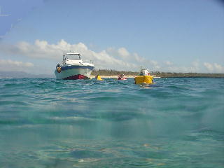 ら海にやっと入ってくる。初めての人も海底をのぞきこみ、珊瑚と色とりどりの魚を見て、感激。40分ほど