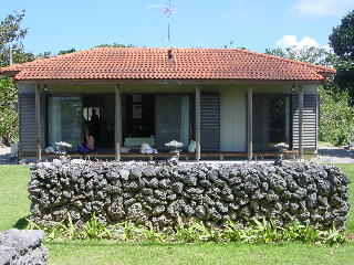 璃子さんも、黒に青色の縦縞があるクマノミを見つける。 初めてのお二人も水に慣れ、珊瑚礁と魚たちの美しさを堪能したようだ。 午後11時半過ぎに、船に上がり、上地島にあるあずま旅館のレストハウスに行き、昼食。宿の主人からこの島についていろいろとお話を聞く。 このパナリ島のパナリとは、離れているという意味。正式の島名は新城島(あらぐすくじま)。以前は、400人位の島民が暮らしていそうである。日々の暮ら しは、西表島で田畑を耕していたとのことだ。現在は、7人が上地島に、下地島の牧場には、一人が暮らしているそうである。島の周りのビーチは白砂で遠浅の ところがあり、シーズンには海水浴に大勢訪れるようである。島の周りには、シュノーケルのポイントはいくらでもある。宿の主人が言うのには、神戸から毎 年、何家族かで10日間滞在する人がいるそうである。 昼食をすませて、集落を歩いてみる。別のグループが島内観光をしていた。軽四輪が走っている。ナンバープレートがつけられている。あまり走るところもない から、良いのではと主人に言うとそうはいかないとのこと。 家々をみると、セカンドハウスとして建て直したり、そこそこに修理され、よく手入れがされていた。 午後1時30分に、大原港に送ってもらい、午後2時30分に、八重山観光フェリーで竹富島に行く。 |