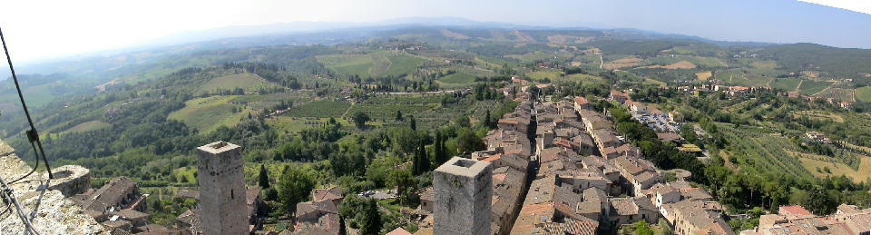 中程まで上ったところで、街並みをそれて横道に入る。見晴らしの良いところに出る。トス カーナ地方の田園風景が一望できる。