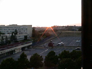 ホテルの部屋には、5階。3日の連泊である。部屋の窓から夕日を撮る。夜の9時でこの景色。