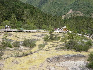 9時15分にお目当ての黄龍に到着。3100メートルの出発点から3500メートルの高地にある五彩池まで13時の予定で、約4キロの道のりを登坂す