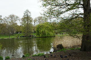 18日に 見たバッキンガム宮殿の衛兵交替を充分見てないことと、宮殿の正面の写真が撮りたく、遣ってきた。宮殿前の記念碑に陣取って待つ。11時頃から12時頃ま であちらこちらから行進してくる。騎兵もいる。お陰さまで雨も降らず、まずまず楽しむことができた。