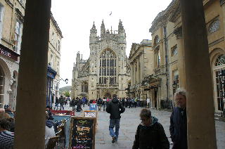 バース大聖堂には、10時 50分頃到着。12時10分まで観光。揃って大聖堂の正面へ移動。その折、右方向から古い衣装を纏った一行がやってくる。添乗員がきいてくれたことによる と、この街ができたことを祝う行事で、街に住み始めた人の子孫が当時の服装で行列を作っているのだとのこと。一行は、大聖堂へ入場する。従って観光客は入 場できない。