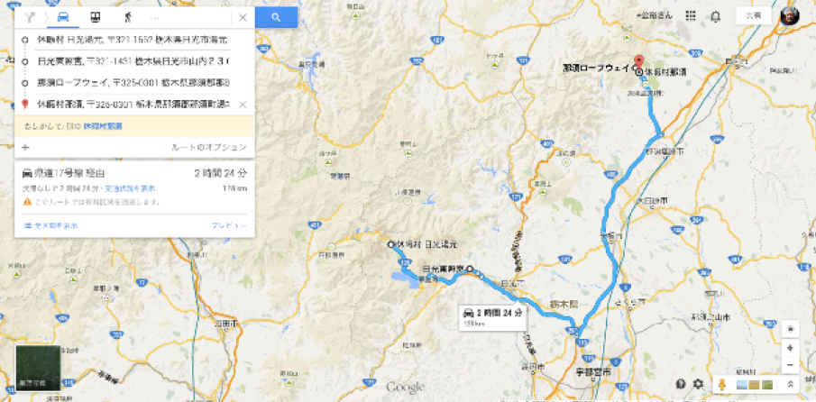 休暇村那須〜那須インター〜久喜インター〜桶川北本インター〜白糸の滝(富士宮市)〜休暇村富士