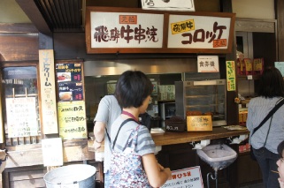 1,500円。それに、串刺しのおかき200円や飛騨牛の串焼き500円。通りを大勢の観光客が歩いてイる。中国人や韓国人も多い。8月の集中豪雨があっ