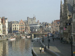 ![]() レイエ川からフランドル伯居城を 右の建物 ギルドハウス |