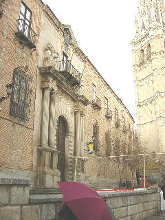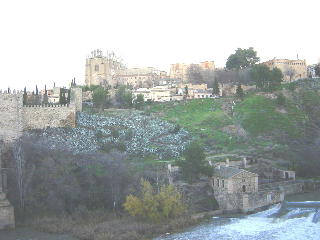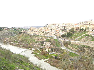 トレドの歴史は古く紀元前2世紀のローマ人定住に始まる。 5世紀に侵略した西ゴート人もこの地を首都と定め、その後回教徒もこの地を支配し、正に 色々な文化が交差した独特の雰囲気持った街である。キリスト教文化と回教徒建築が見事に融和した、まさにスペインの歴史そのものだ。マドリッドに近いた め、必ずといってよいほど訪れる観光地。街全体が城壁になっており、タホ川がほぼ3方を囲み残りを城壁で固めた強固な城塞都市だ。 マドリッドから行くと 最初に目に入るのがビサグラの門、カルロスX世門とも言う、こちら側が城壁部分でとても立派な門。 また中心にある大聖堂はスペインのカトリックの本山と なっている。 宗教に興味の無い人でも、十分に堪能できる建築様式と美術品、絵画、彫刻等が多くあり、中でもクストディア(聖体)は純金部分を含め素晴ら しい彫刻である。それから、「オルドス伯の埋葬」を見学。これは素晴らしい。門外不出のもので、ここに来ないと実物にはお目にかかれない。
