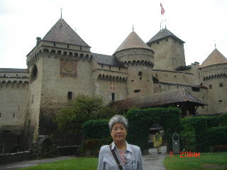 に。6時前に到着。もう城内を見学することができない。雨が降る中、傘をさして外回りを写真撮り。湖畔から見るシヨン場の写真を見ていたので、そのポイン