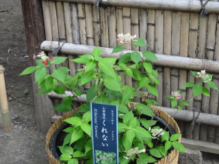 駒込駅に降り立ち、道路案内を見て受付入り口に向かう。駅から350mほどとのこと。時折、ビルの間から煉瓦塀と鬱蒼と茂る樹木が垣間見える。受付で入園料を支払う。65歳以上は150円。入園すると紫陽花のシーズンということで、珍しい紫陽花の鉢が置いてある。