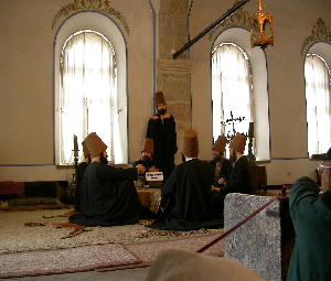 イスラーム神秘主義のメヴラーナ教団は、1925年に解散させられ、1927年から博物館となっている。霊廟の丸屋根は青いタイルで覆われてい る。写真ではその美しさがみえないのが、残念。下右端の写真に少し青いタイルが見える。