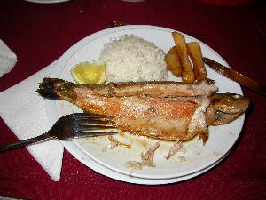 ギョレメの入り口にあたるのか、BORA洞窟レストランで食事。トラサンワイン入りの岩山型瓶を10リラというので買う。