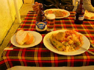 チャナッカレのホテルを8時30分に出発。12時過ぎにベルガマに到着。レストラン「アクスレピオン」(病院という名)でトルコ料理を食べる。野 菜の煮物が中心で、並べられた料理を指さすと持っている皿に盛ってくれる。薄味で少し塩気がほしいかなと思うものであった。このレストランから出た通りか らベルガモン(ベルガマの古名)遺跡が望まれる。