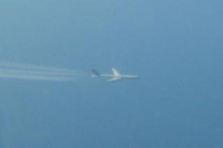 ジャ ンボジェット。10時30分から搭乗できる との案内。予定通りと思い、並ぶと35分に機内へに。予定より10分早く11時にはエプロンを離れて滑走路に。20分にテイクオフ。大阪上空を周りながら高度を9000m位 まであげ、水平飛行に移ってからシートベルト解除サインが出る。