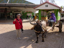 2002年1月9日、前日に石垣から小浜島に渡り、ヤマハのはいむるぶしに宿泊しました。広い敷地で、部屋も大変広かったです。小浜島では 「ちゅらさん」のロケ地の見学、それから西表島で由布島に牛車で渡り、仲間川上りでマングローブ林の見物、竹富島の村を牛車で巡り、石垣の戻って鍾乳洞 「竜宮城」の見物と盛りだくさんでした。この日の宿泊は7年前に泊まった「日航八重山ホテル」でした。